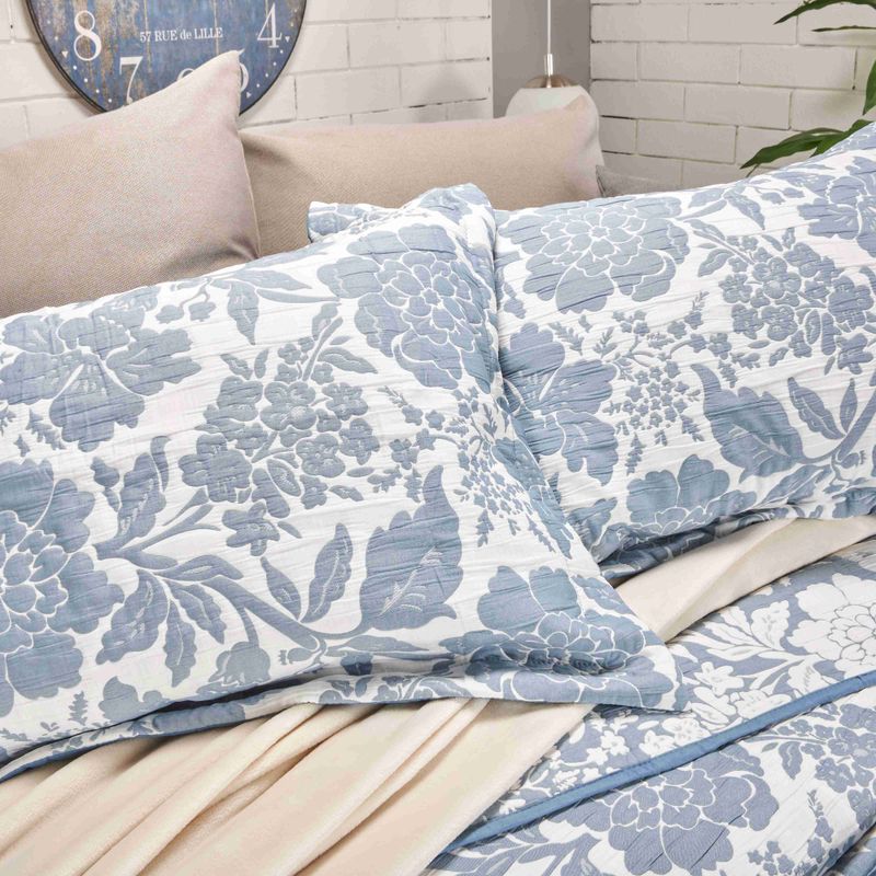 Cubrecama jacquard reversible flores azul nórdico